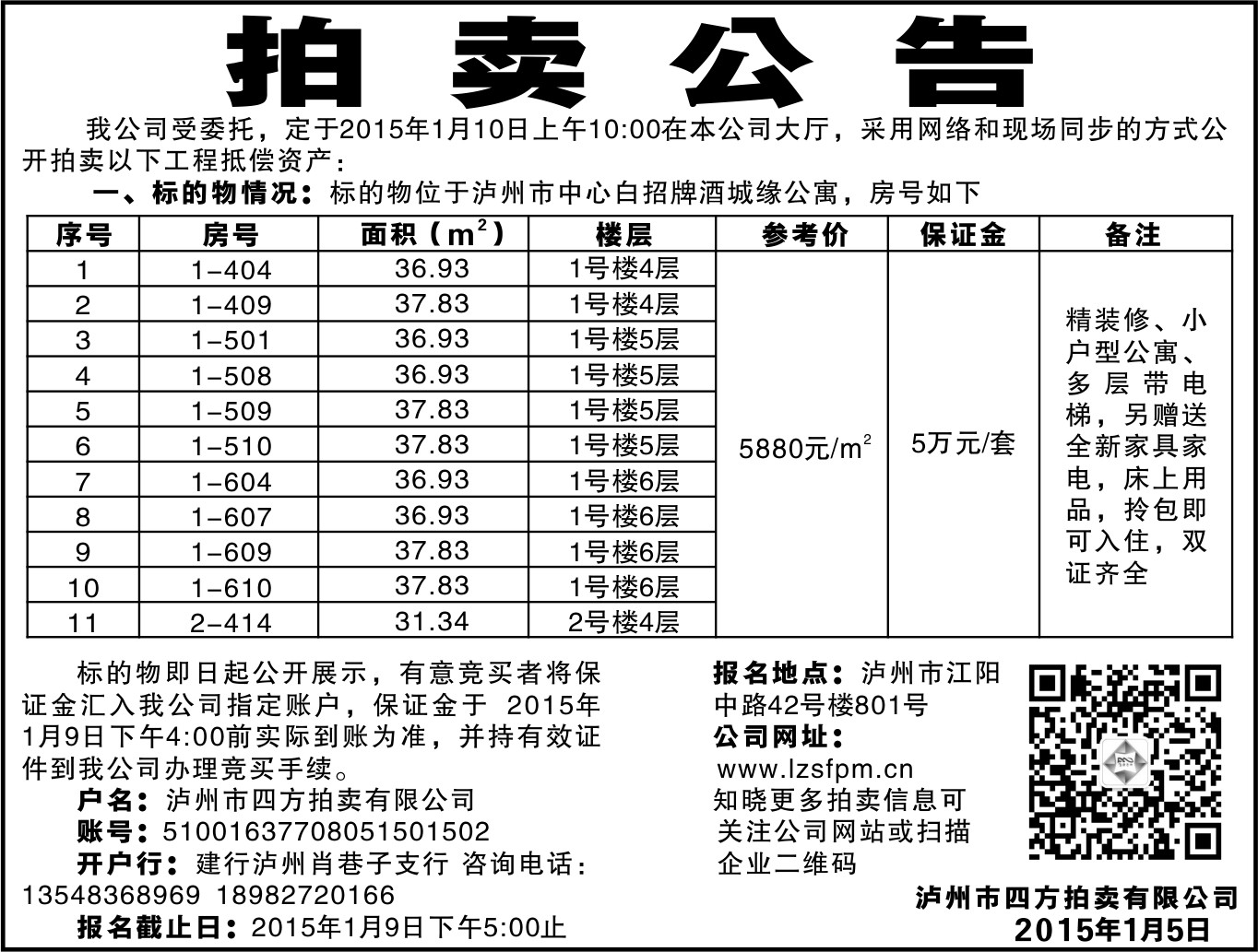 2015年1月10日拍賣公告